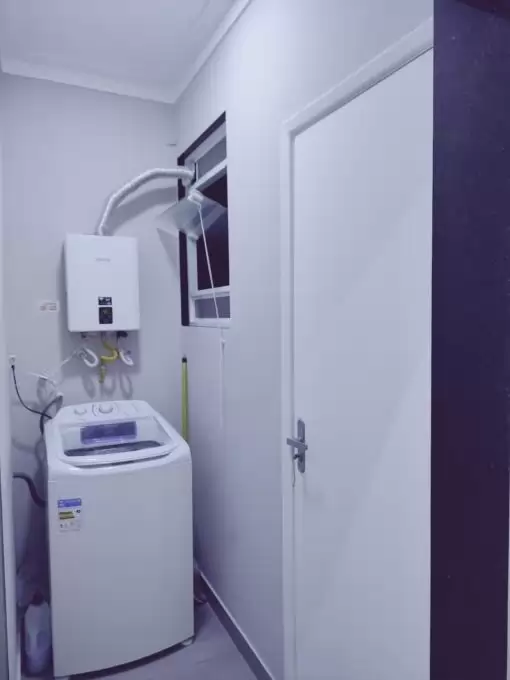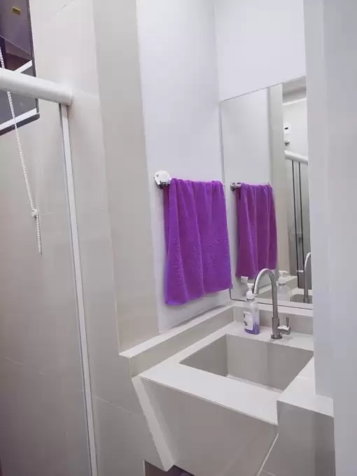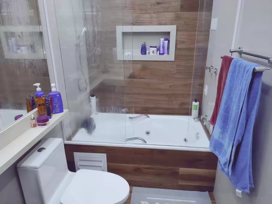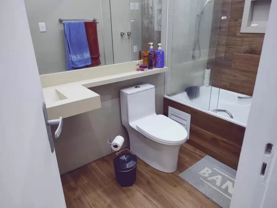 O apartamento conta com dois quartos, sendo uma suíte. O banheiro principal oferece hidromassagem, pia esculpida e nichos de design moderno.