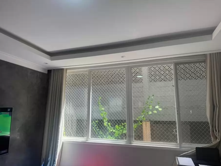 A sala é ampla, iluminada e silenciosa, com janelas generosas e vista para os fundos, oferecendo mais privacidade e tranquilidade.